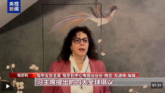 匈中友协主席 匈牙利中心电视台台长 纳吉·尤迪特·埃娃:习主席提出的四大全球倡议,尤其是全球治理倡议,契合了当前国际形势和需要。当今世界变乱交织,这一倡议有助于加强对话、增进国际合作、重塑全球治理。