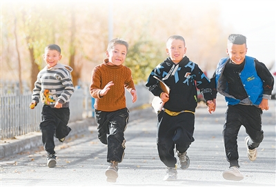 小朋友奔跑在达里雅布依新村。