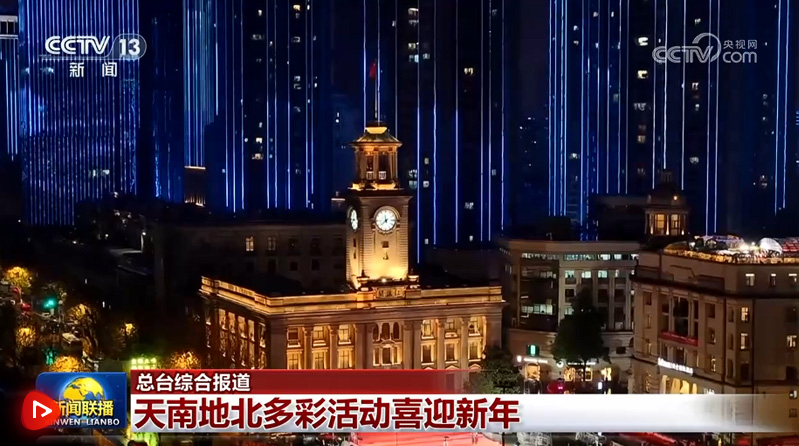 灯火璀璨迎新年。在广东广州、湖北武汉、辽宁大连等地的一处处地标前,跨年主题光影秀、灯光秀将夜晚装点得绚丽多彩。在江苏南京、天津杨柳青古镇等地,无人机表演为现场观众带来一场难忘的跨年视听体验。