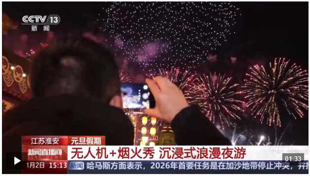 元旦假期,江苏淮安、安徽合肥、河北临漳等地,为延长游玩时间,在夜间推出了不同活动。无人机表演、烟花秀、新春灯会等,让人们在欢乐的氛围中,尽享多彩生活。