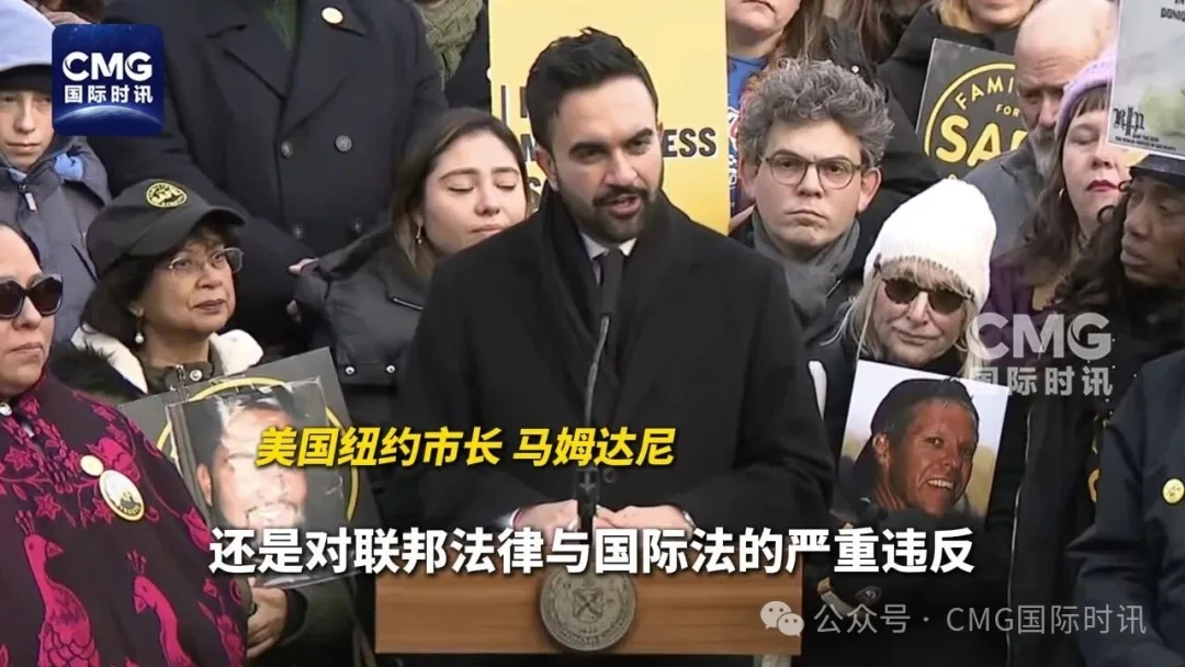纽约市长马姆达尼同日发表讲话,强调自己对于此次军事行动的反对,表示美国此举不单是图谋颠覆他国政权,同时也是对美国联邦法律与国际法的严重违反。