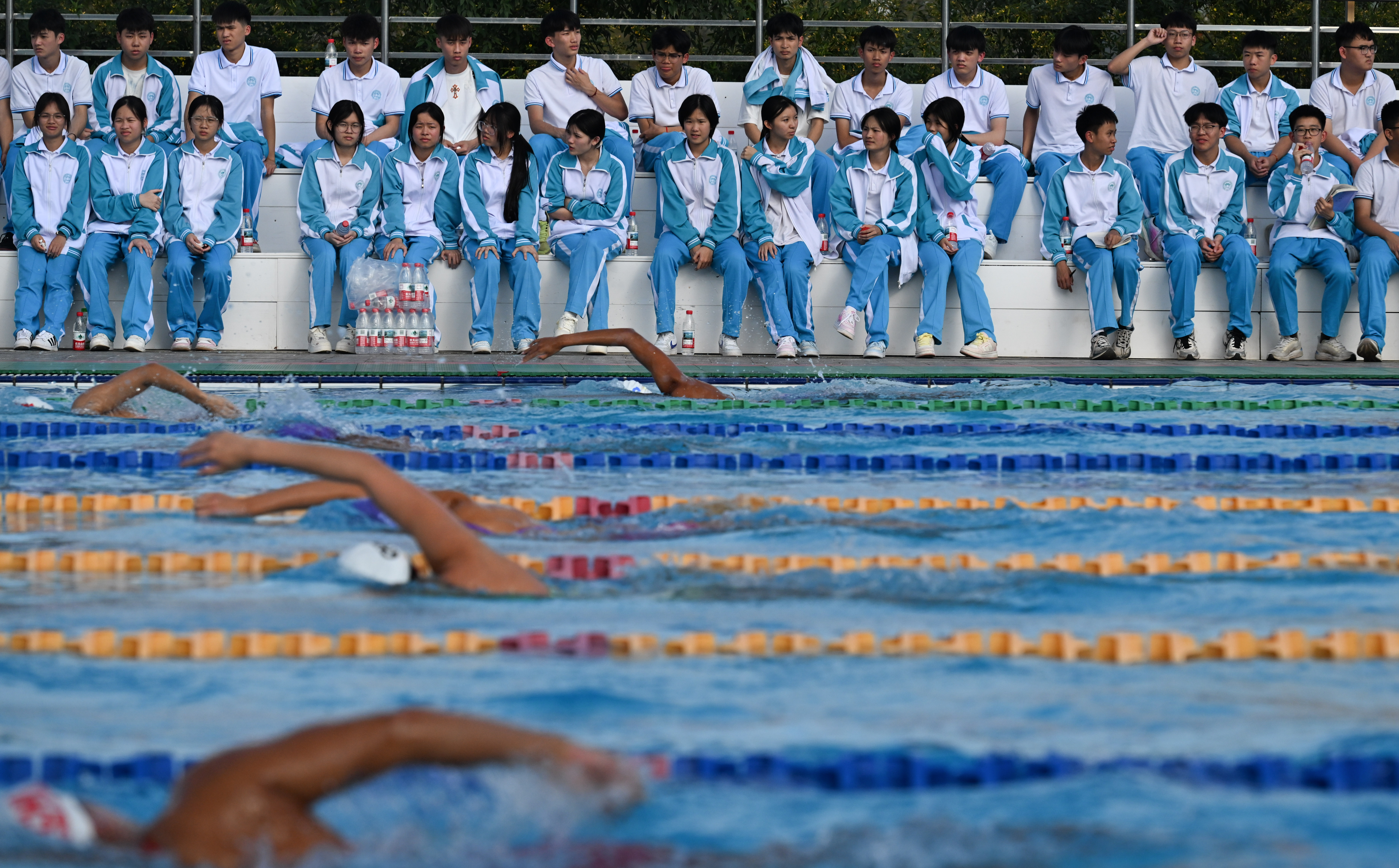 1月5日,以“泳往直前,共筑梦想”为主题的游泳奥运冠军进校园活动在海南省白沙黎族自治县举行。奥运冠军张雨霏、覃海洋、潘展乐来到海南中学白沙学校,与师生进行互动交流、分享经验。