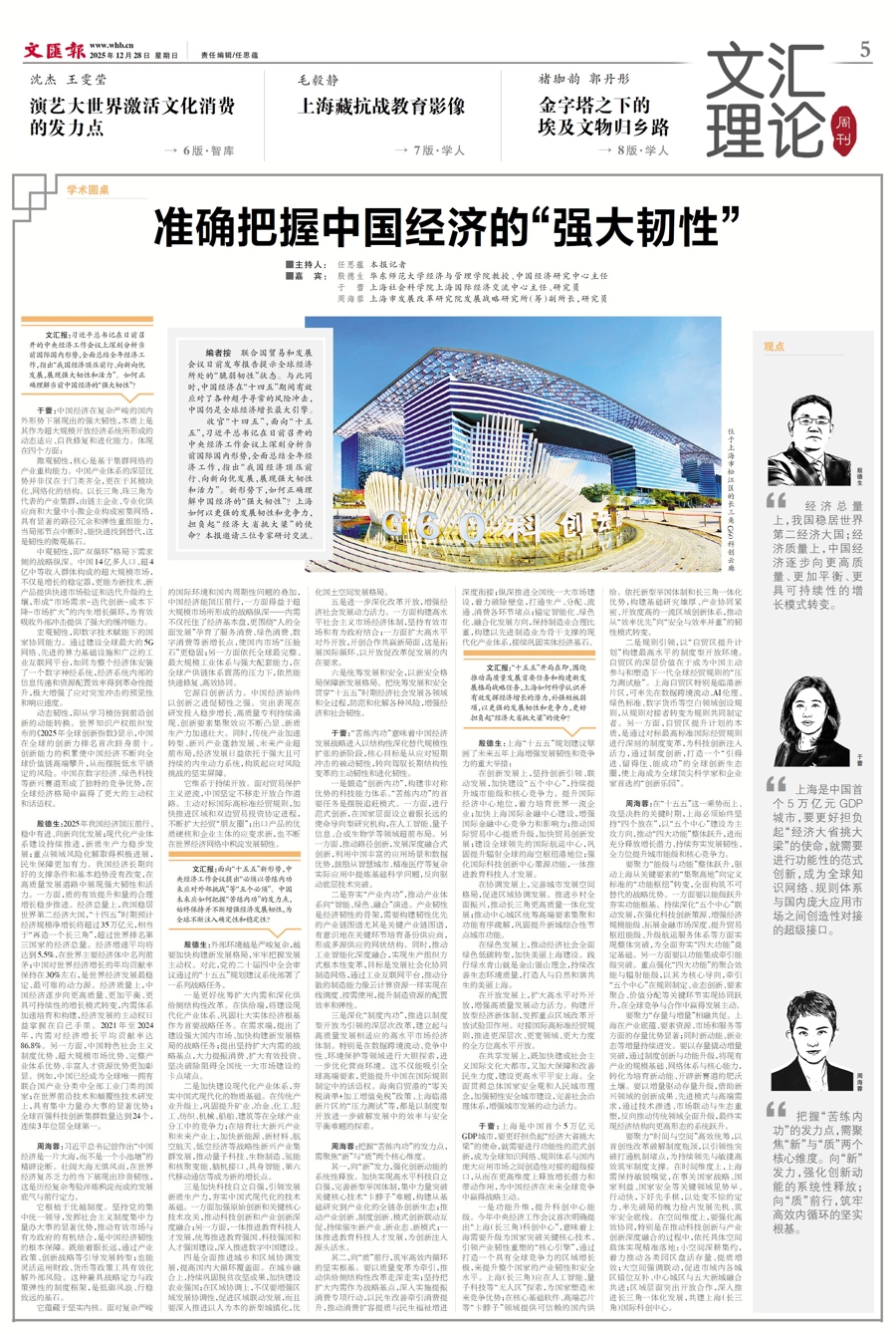 收官“十四五”,面向“十五五”,习近平总书记在日前召开的中央经济工作会议上深刻分析当前国际国内形势,全面总结全年经济工作,指出“我国经济顶压前行、向新向优发展,展现强大韧性和活力”。新形势下,如何正确理解中国经济的“强大韧性”?上海如何以更强的发展韧性和竞争力,担负起“经济大省挑大梁”的使命?本报邀请三位专家研讨交流。