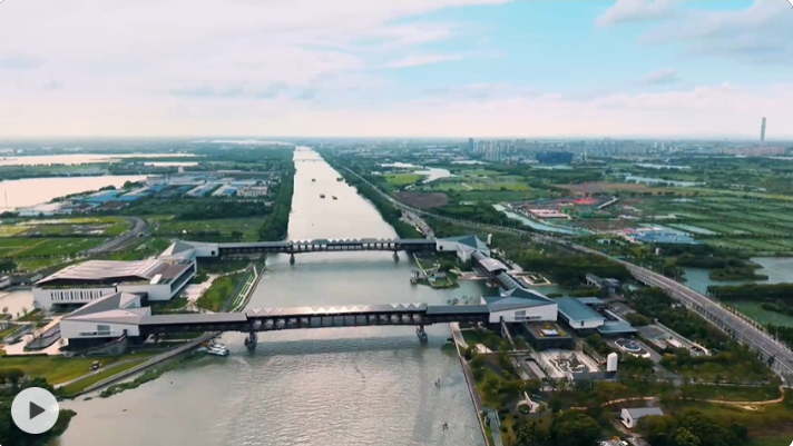 沪苏浙交界处,太浦河西接太湖、东连黄浦江,潋滟水波挽起上海青浦区、江苏苏州吴江区和浙江嘉兴嘉善县三地,被称作“长三角原点”。河上,一座形似四合院的建筑横跨两岸,便是全国首个跨省域房建项目——方厅水院。