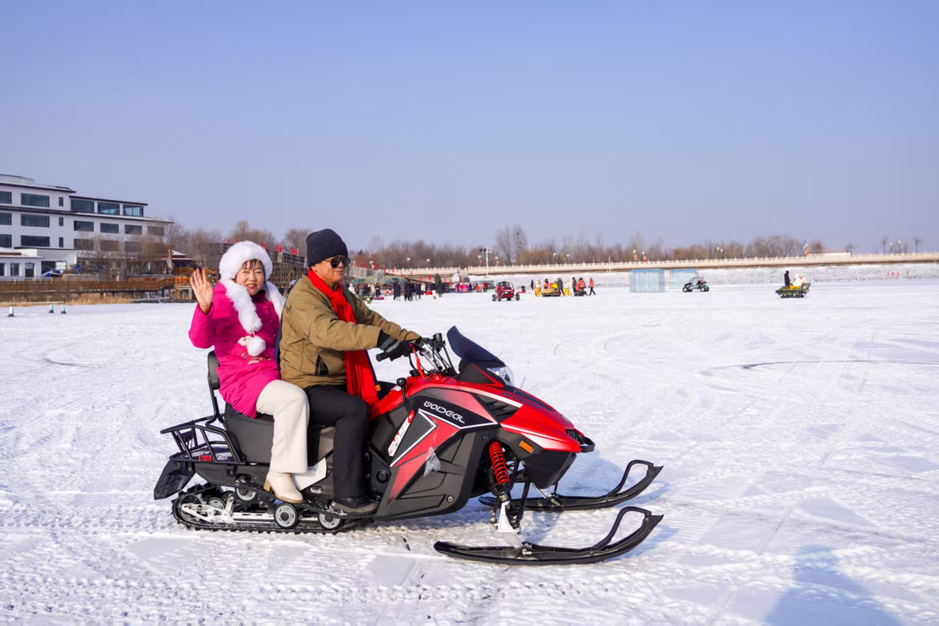 为点燃全民冰雪运动激情,助推敦化冰雪经济高质量发展,敦化六鼎山文化旅游区锚定“冰雪+”融合发展方向,依托圣莲湖优质天然冰雪资源,精心打造覆盖全年龄段人群的沉浸式冰雪乐园。乐园构建起多元趣味项目矩阵:有刺激过瘾的冰滑梯、酷炫十足的雪地坦克、动感奔放的雪地摩托、欢乐满满的雪圈大漂移等,每一项体验都能让游客尽情释放冬日活力。尤为特别的是冬日独有的冬钓项目,让游客可在结冰湖面上凿洞垂钓,于静谧雅境中感受闲适之乐。同时,冰雪乐园还贴心设置了冰上爬犁、冰上自行车等免费体验项目,全天候向游客免费开放,让市民、游客零门槛畅享冰雪乐趣,感受冰雪世界的浪漫与活力。