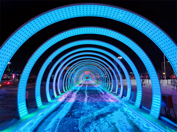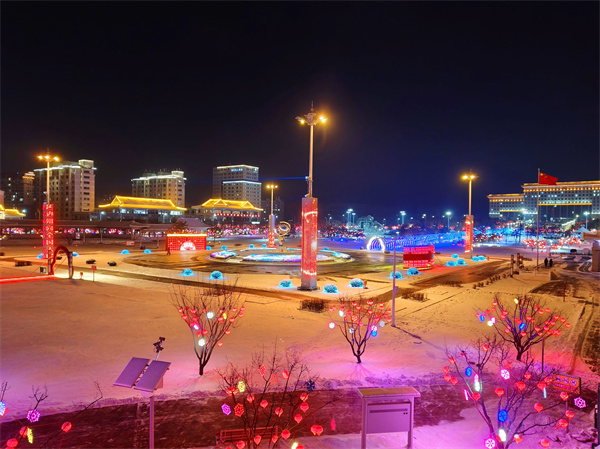 夜幕降临,华灯初上,延吉市阿里郎广场变成了流光溢彩的画卷。盏盏霓虹次第亮起,将广场勾勒得如梦似幻,璀璨灯火与朦胧夜色温柔相拥,光影交织间,奏响一曲浪漫动人的城市乐章。漫步其间,目之所及皆是斑斓景致:绚丽的灯带缠绕着廊柱,与地面的彩色灯阵相映成趣;不少人不畏严寒走进广场,或驻足拍照,或闲庭信步;游乐区依旧热闹,孩子的欢声笑语,回荡在广场上,随即飘散风中、融入夜色。作为延吉夜间经济的亮丽名片,阿里郎广场以独特的魅力点亮城市的夜生活,也让八方来客感受到延边浓郁的地域风情与蓬勃生机。