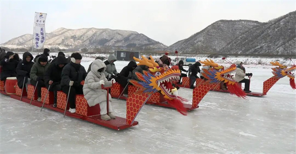 解锁冰雪新玩法 冰上龙舟赛燃动图们江