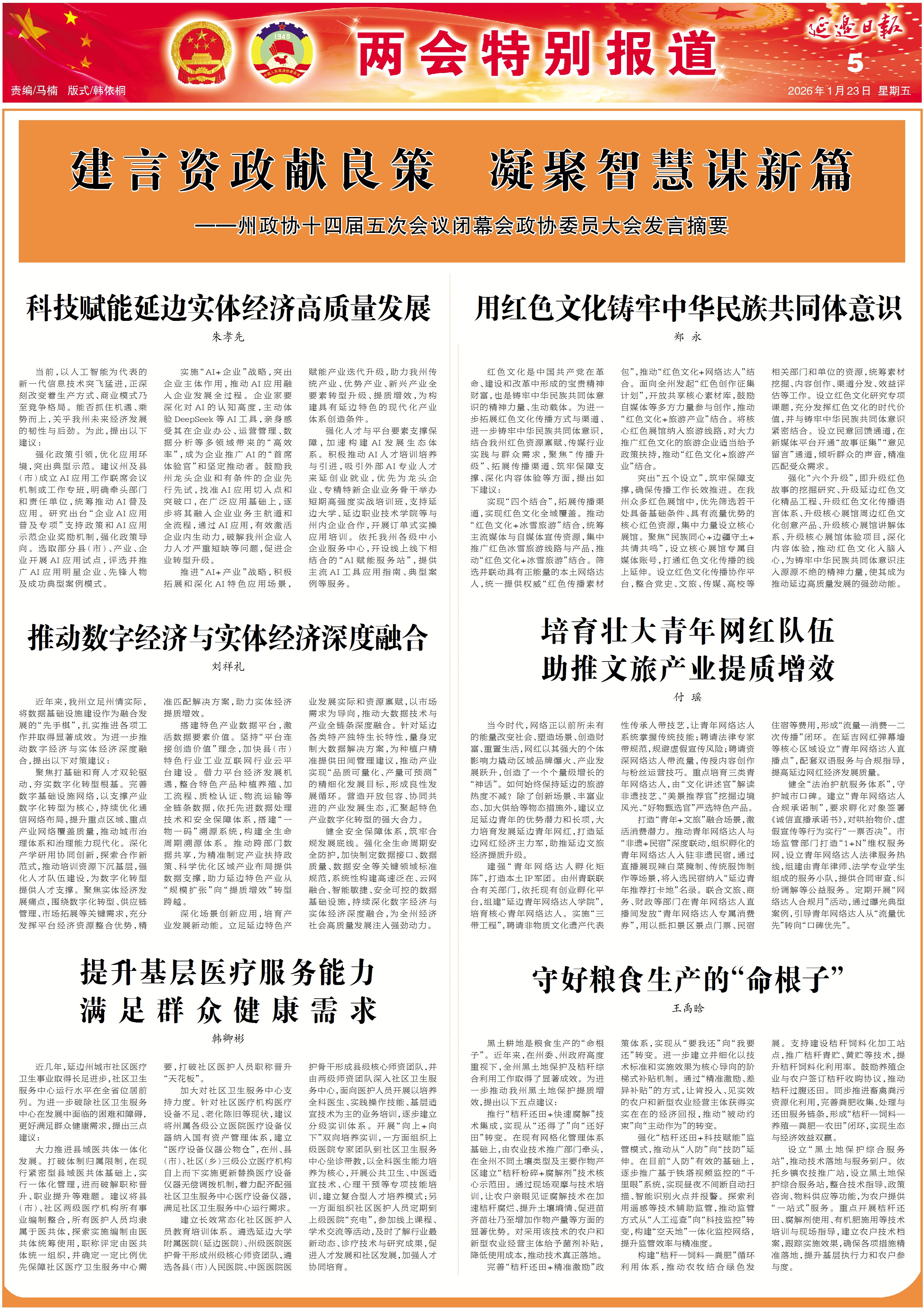 两会特别报道 | 建言资政献良策凝聚智慧谋新篇——州政协十四届五次会议闭幕会政协委员大会发言摘要