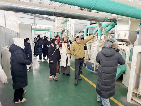 在谷香源大米加工基地,队员们观摩了“稻谷入场—清理去杂—碾磨抛光—色选分级—真空包装”的自动化生产线,标准化、精细化的生产理念贯穿全程。队员们就水稻种植规模、品种改良、溯源体系建设及市场销售渠道等情况与企业负责人进行了交流。