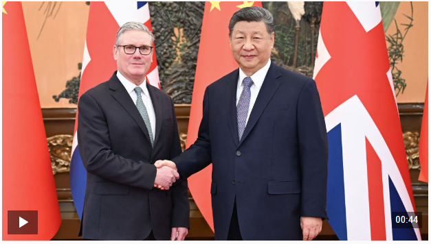 1月29日上午,国家主席习近平在北京人民大会堂会见来华进行正式访问的英国首相斯塔默。