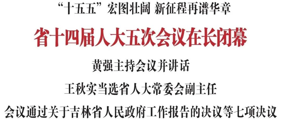 闭幕会上,黄强指出,在全体代表共同努力下,省十四届人大五次会议圆满完成了各项议程。这是一次高举旗帜、发扬民主、团结奋进的大会,必将激励全省人民坚定信心、勇往直前、攻坚克难,奋力开创吉林全面振兴和高质量发展新局面。