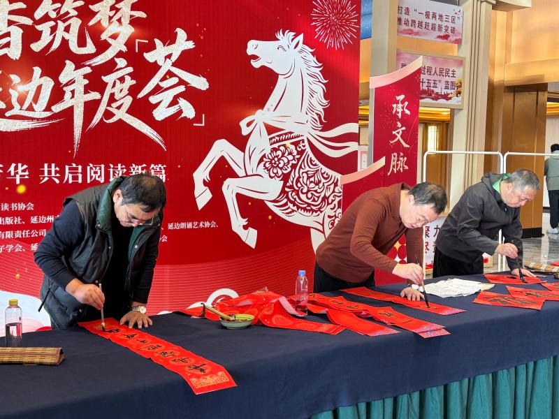 活动中,参与人员交流了《全民阅读促进条例》的学习体会,分享了开展阅读活动的经验,介绍了延边教育出版社的新书《青杨消息》,对“延边·书香地图”项目的规划图及进度表进行了解读。主会场外,还开展了写春联和福字、图书互动交流、抽取阅读盲盒、非遗文创作品展示等活动,营造出浓浓的书香氛围。