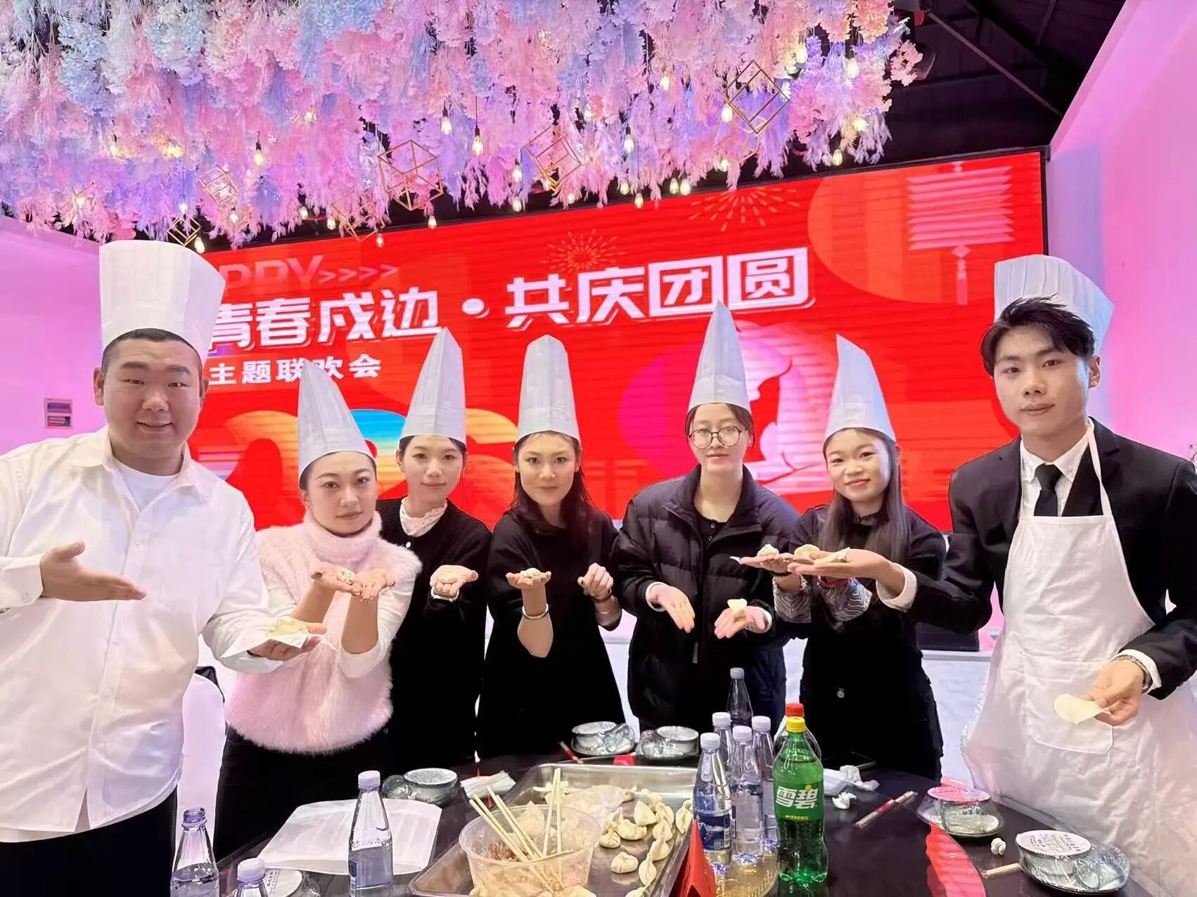 联欢会上,歌曲《暖暖》、舞蹈《醉清波》、乐器演奏《猪猪侠》、朗诵《青春铸边疆·初心映图们》等十余个节目精彩纷呈,展现出青年人的蓬勃朝气和昂扬向上的精神面貌。包饺子环节,青年干部与志愿者随机组队,在专业人员指导下学习传统包法,并设计特色造型。大家分工协作,擀皮、包馅、捏形,场面温馨热闹。随着一锅锅亲手制作的饺子端上桌,众人围坐品尝,在鲜香中体味“此心安处是吾乡”的温暖。