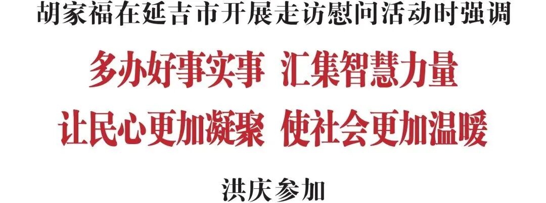 新春佳节即将来临之际,2月12日,省委常委、州委书记胡家福在延吉市走访慰问延边军分区、93032部队和延边大学,看望老党员、专家人才和特困劳模、城市低保户、特困残疾人、优抚户,代表州委、州政府送上节日祝福和新春问候。州委副书记、州长洪庆参加部分活动。
