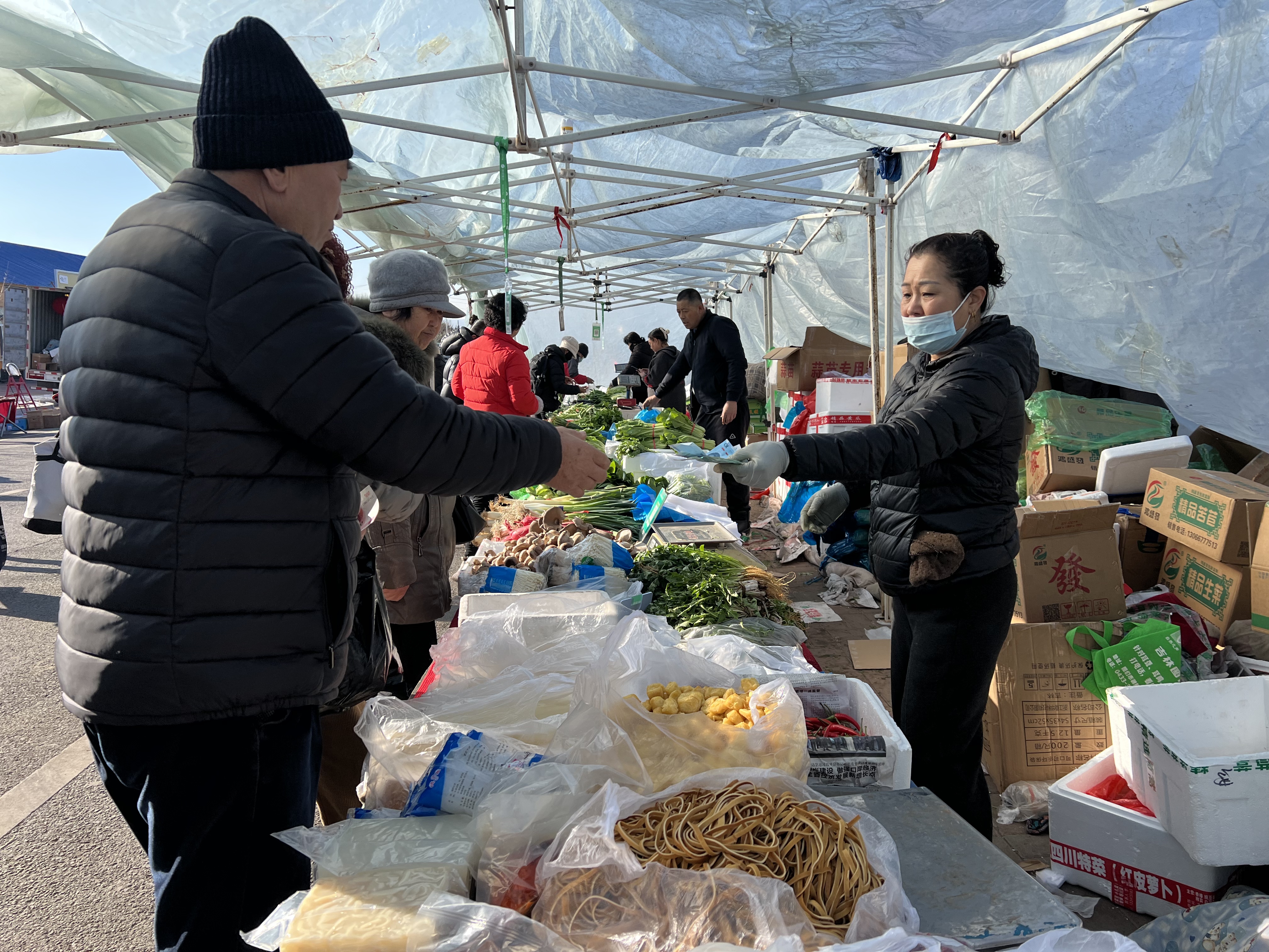 常年经营果蔬副食的刘丽慧,是凉水大集里的“老熟人”。她告诉记者,如今的凉水大集宣传广、人气旺,春节前更是客流如潮。为了赶上年货大集,她们一家7口从凌晨备货、清晨到场,开市就忙得脚不沾地,单日销售额突破万元,红火的生意让她对新年更添期盼。