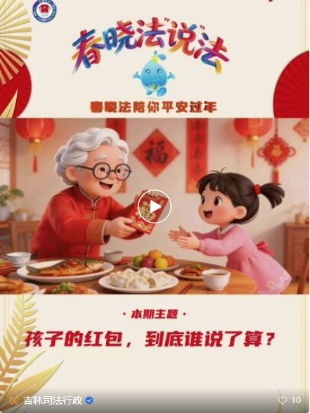压岁钱红包作为一种寓意吉祥、传递祝福的方式,在春节期间扮演着不可或缺的角色。春节时,小孩子收到长辈给的压岁钱红包,谁有支配权呢?本期【请你来辟谣】邀请吉林普法宣传IP形象“春晓法”为大家讲清楚!