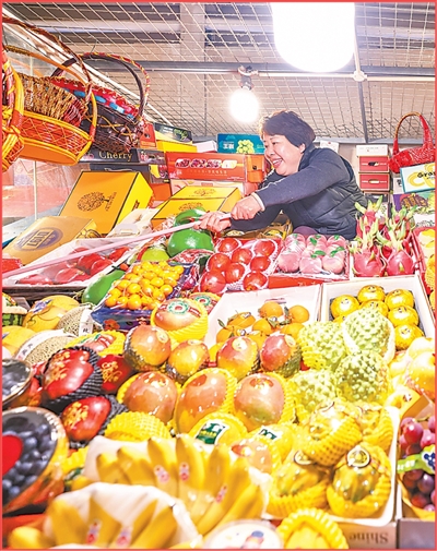 市民在云南曲靖市麒麟区“年货街”选购食品。