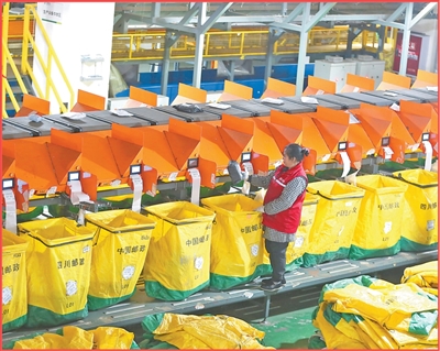 四川乐山高新区,中国邮政乐山分公司处理中心分拣设备有序运转。