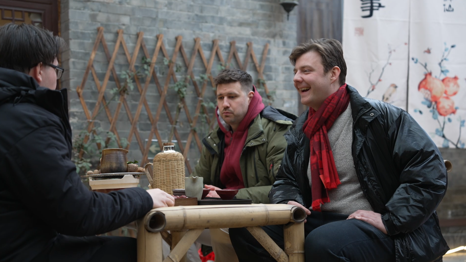 帝汉尼(右一)带着匈牙利老乡们体验中国时下最流行的“围炉煮茶”