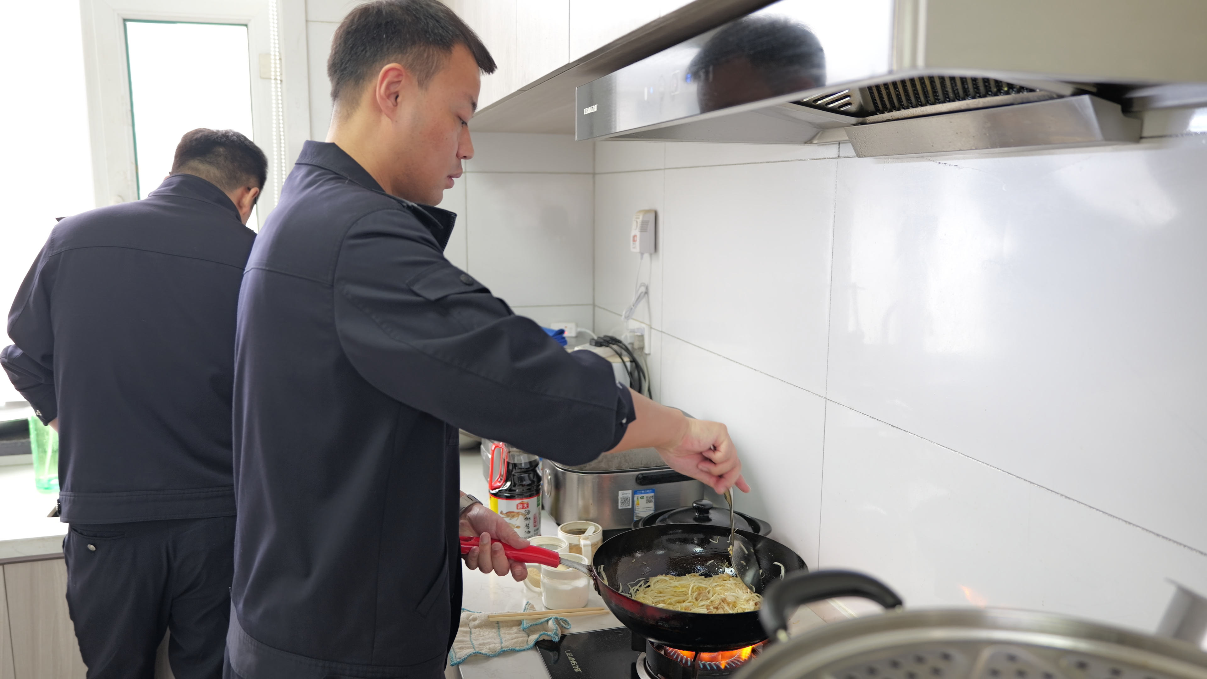 此时夜幕降临,华灯初上,出警归来的民警虽满身疲惫,却依旧精神饱满,迅速投入到警营新春布置中。大家拿起春联、福字与灯笼,清扫院落、张贴春联、悬挂灯笼,鲜红的春联贴满门窗,温暖的灯笼照亮警营,每一处细节都充满着浓浓的新春气息,让坚守的警营暖意融融。随后,大家围聚在一起,动手洗菜、切菜、烹饪,亲手制作属于基层民警的年夜饭。虽没有奢华的菜肴,却有最真挚的情谊;虽没有家人围坐的热闹,却有战友并肩的温暖。饭菜飘香,笑语连连,大家举杯互致新年祝福,分享工作点滴,诉说从警初心,在简单而温馨的年夜饭中,感受集体的温暖与职业的荣光。