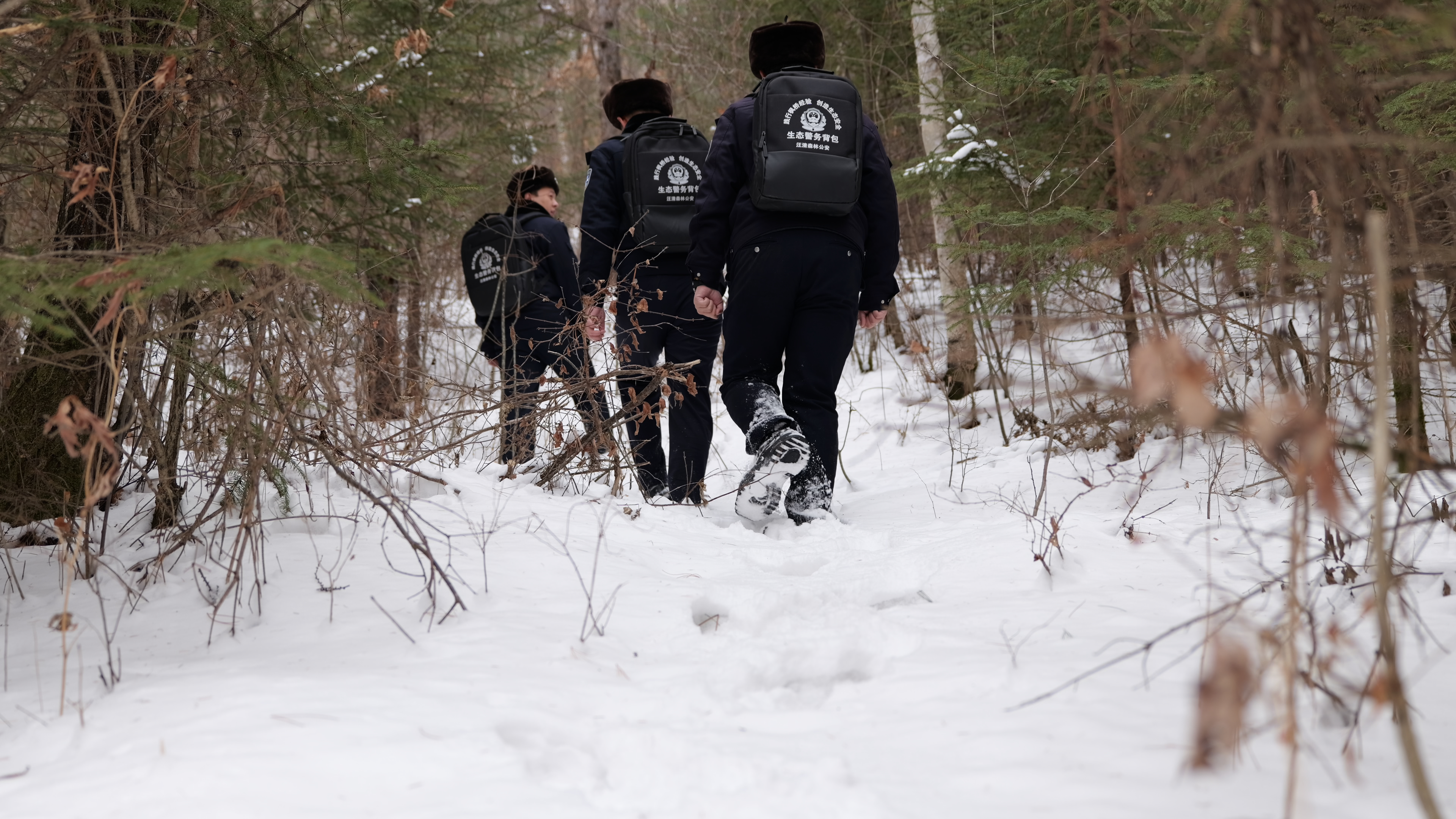 除夕清晨,天刚蒙蒙亮,金仓森林派出所的警灯便已划破静寂的天空。所长张鹤鸣带领民警整装出发,深入辖区山林开展冬季巡山护林工作。山林间银装素裹,寒风凛冽,民警们踏着积雪、徒步前行,虽然林道雪深难行,但民警们毫不松懈,细心勘查沿途动物足迹、人类活动痕迹,不放过任何可疑线索。“看,这有清晰的狍子脚印……”大家循迹深入,全面排查盗猎、猎套布设等违法痕迹。正是因为他们的常年巡护与执着坚守,让野生动物有了安然栖息的生存环境,这是森林公安献给新春最踏实的“平安礼”。