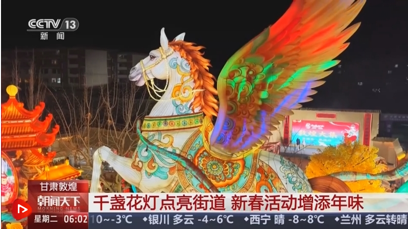 甘肃敦煌:千盏花灯点亮街道 新春活动增添年味