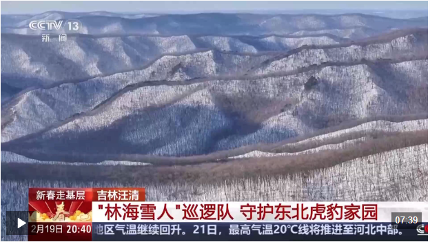 汪清森林公安分局林海雪人巡逻队队员 赵子越:这是一个隐蔽服,更好地让我们在雪地中隐蔽起来。这样野生动物,比如老虎、豹发现我们的可能性也会小一些。