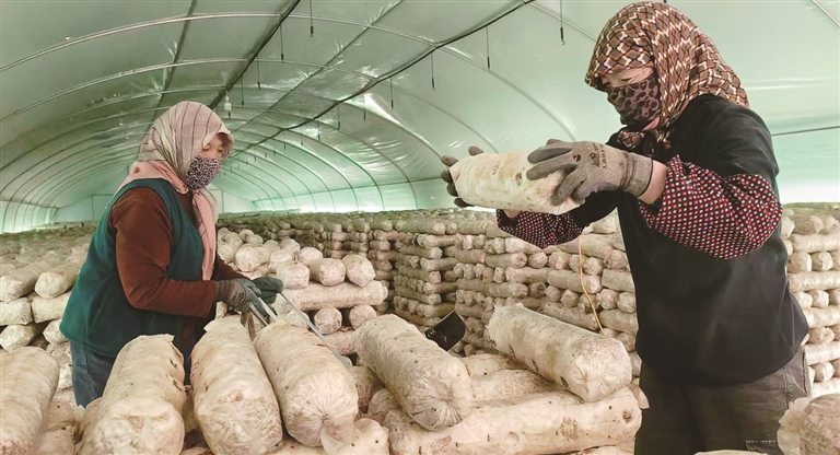 新民村村民在菌菇大棚忙碌。本报记者 闫磊摄/光明图片