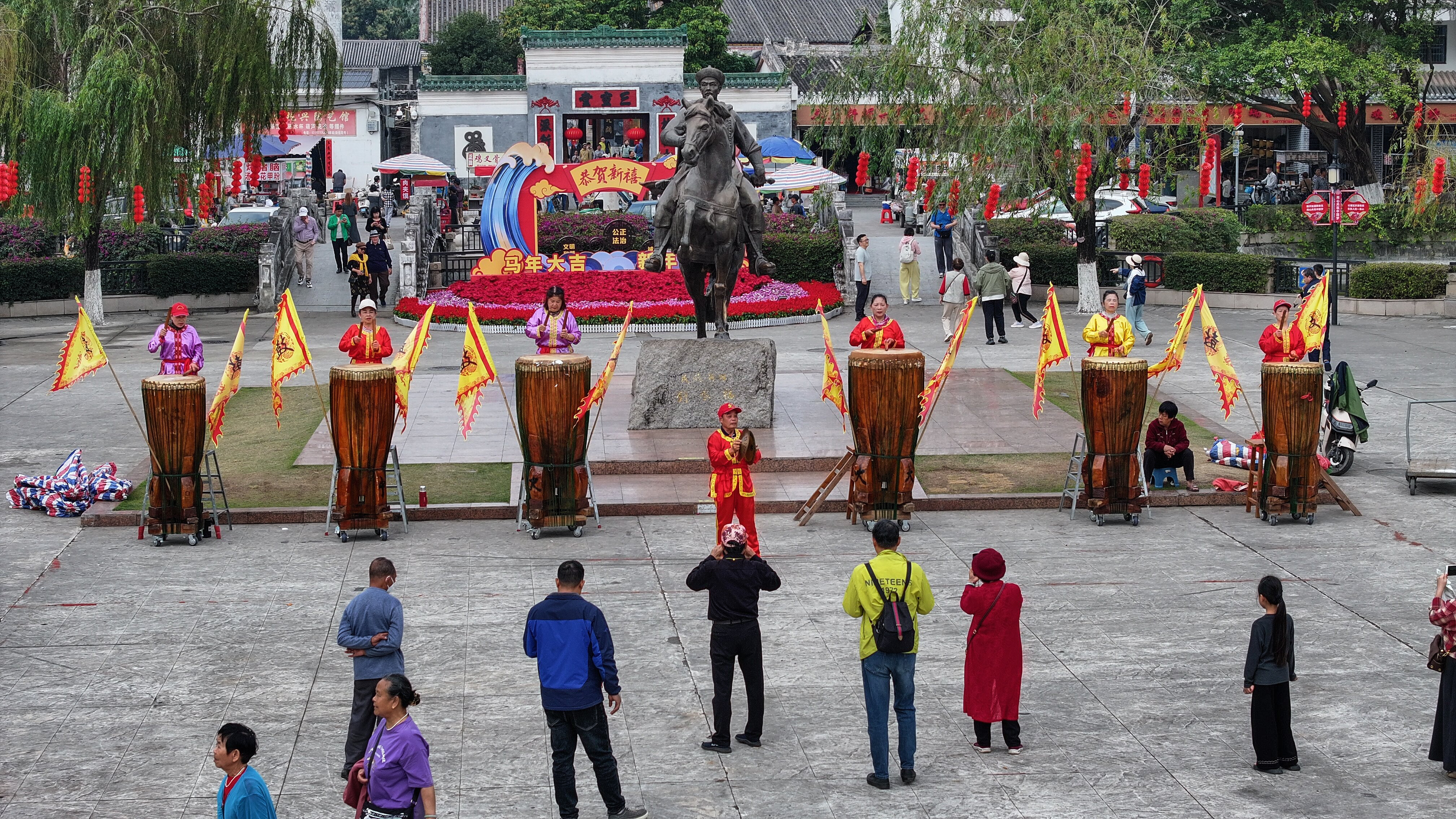春节期间,在广西钦州市刘永福广场,轮番展演的新春采茶戏和烟墩大鼓“击鼓迎春”等活动,让传统文化的韵味飘香,丰富了群众的春节文化生活。