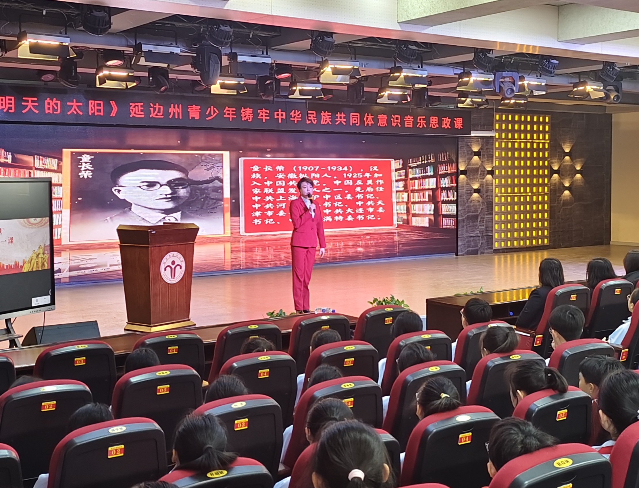 在主课堂延吉市北山小学,吉林汪清爱国主义教育中心教育培训部部长李蕾以《托起明天的太阳》为题,带来了一堂沉浸式音乐思政课。课程紧扣铸牢中华民族共同体意识主线,运用“以史串歌、以歌叙史”的新颖形式,生动回顾了安源儿童团、东北抗联的峥嵘岁月,深情讲述了童长荣、陈翰章、金锦女等延边革命英雄的英勇事迹。整堂课程45分钟,将红色历史、民族团结与家国情怀深度融合,让红色基因触手可及。