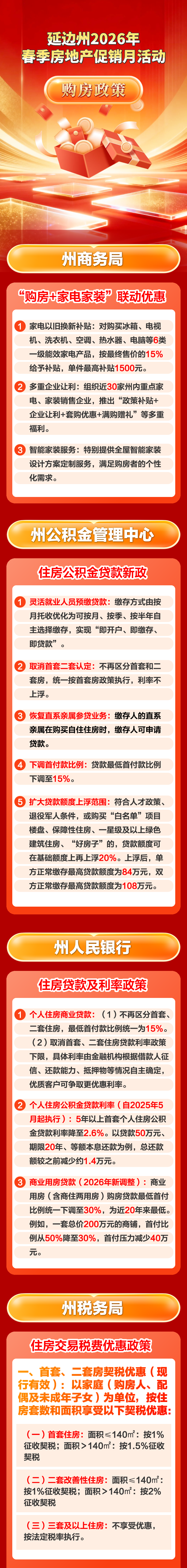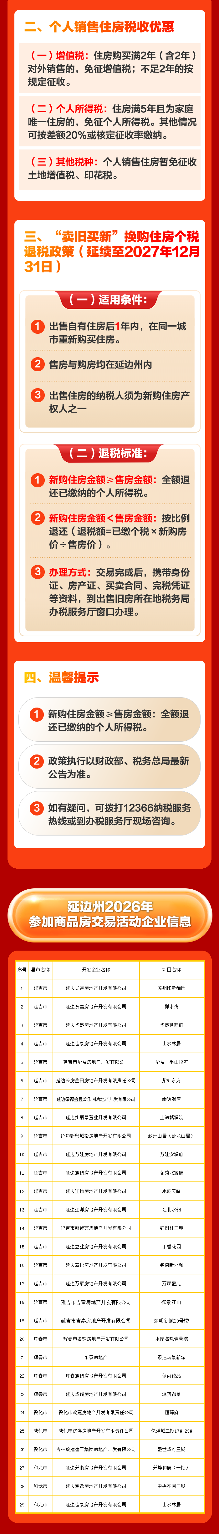 2026年延边州春季房地产促销月将于3月8日至3月31日举办,延吉、珲春、敦化、和龙4个县(市)的29家房地产开发企业及州内重点家电、家装销售企业参加,提供各项优惠福利。