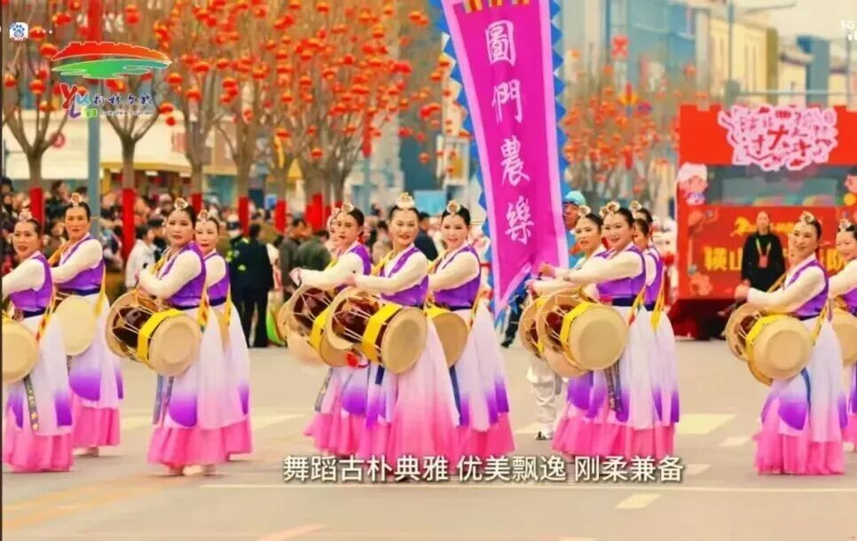 图们江长鼓舞传承艺术团惊艳陕北榆林新春秧歌展演 长鼓传情跨山海 非遗绽放塞上春