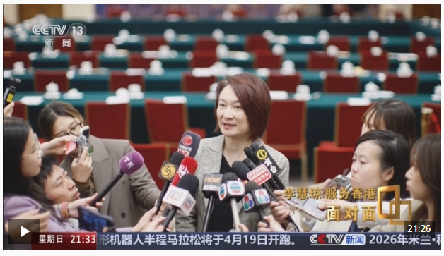 李慧琼:这个对香港来说是一个非常宝贵的机遇,如果能抓得住,香港一定可以贡献香港所长,为强国建设贡献力量,因为国家已经定了一个五年的工作方向,我们也要加快建设创科中心,也要把国际高端的人才聚集在香港,吸引更多海外企业通过香港进入内地,也可以让更多内地的企业,通过深圳跟香港走出去,其实纲要里面要求我们,除了融入国家发展大局以外,还要服务国家发展大局。