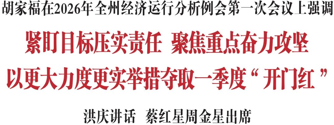 胡家福指出,去年,面对错综复杂的国际形势和艰巨繁重的改革发展稳定任务,全州上下牢牢把握稳中求进工作总基调,聚焦跨越赶超目标任务,攻坚克难、真抓实干,推动经济呈现稳中有进、提质增效的良好态势,主要经济指标表现亮眼、领跑全省。今年1—2月,各县市各部门勇于担当、主动作为,紧紧围绕项目建设、工业运行、扩大消费等重点任务,千方百计扩投资、稳工业,想方设法促消费、稳外贸,为推动全州经济平稳运行奠定了良好基础。一季度是全年经济发展的“风向标”,扎实做好一季度经济工作,对于改善社会预期、提振发展信心、坚决完成全年目标任务至关紧要。各级领导干部要聚焦经济建设、研究经济工作,各项政策措施要持续发力、更加给力,突出目标管理的预见性,强化对策措施的针对性,增强过程控制的实效性,以奋发有为的精神状态和求真务实的工作作风,奋力夺取一季度“开门红”。