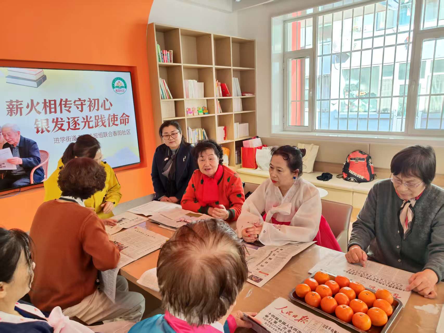 “全国两会胜利闭幕,为我们指明了新的方向……”春阳社区老年读报组78岁老党员杨丽珍戴着老花镜,手持《延边日报》,声情并茂地朗读全国两会新闻。杨丽珍是州内知名红色宣讲人,有着近50年党龄,也是读报组的核心骨干。“读报不是简单念字,是要把党的声音送到大家心坎里。”她的话语,道出了读报组的初心使命。