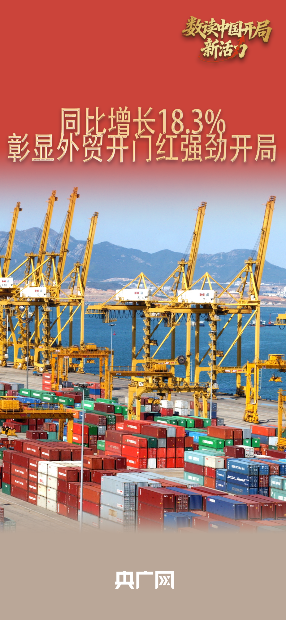 数读中国开局新活力丨同比增长18.3%,彰显外贸“开门红”强劲开局