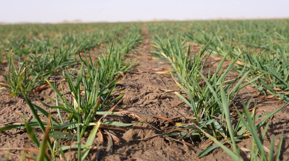 图为2026年3月在新疆生产建设兵团第十四师昆玉市7.38万亩沙漠工程治理区内拍摄的麦苗。