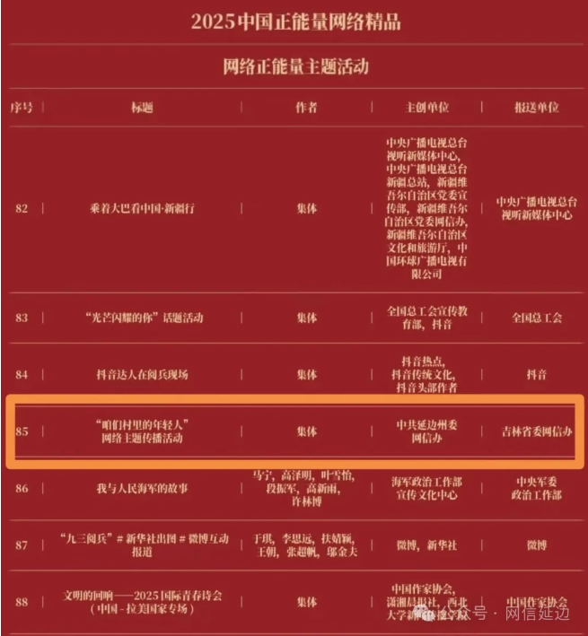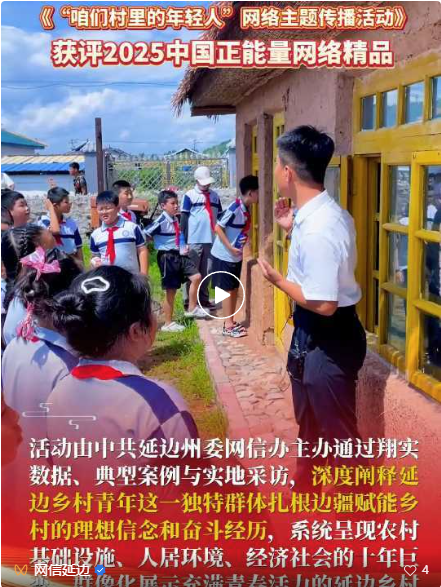 延边州委网信办 “咱们村里的年轻人” 网络主题传播活动获评2025中国正能量网络精品