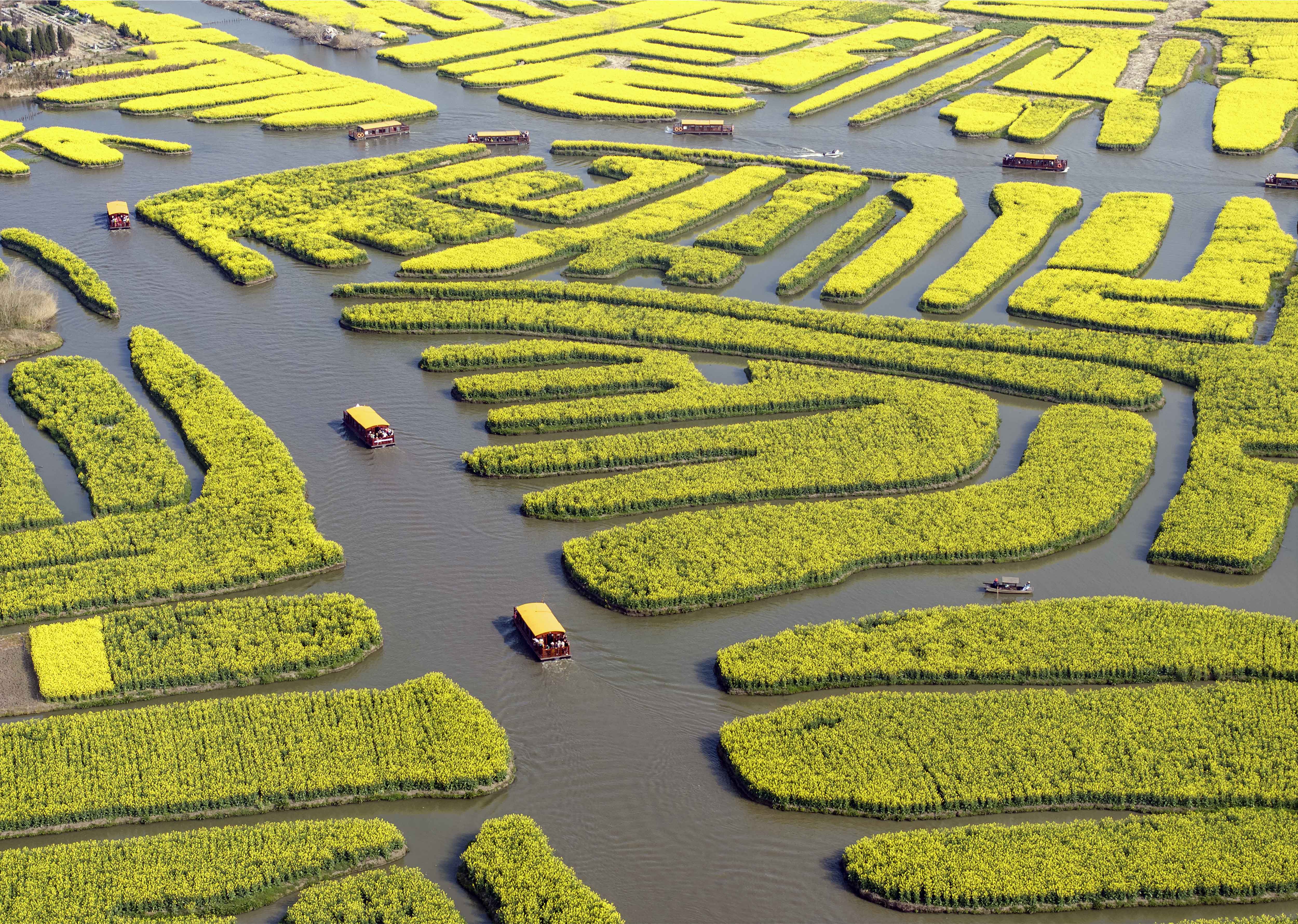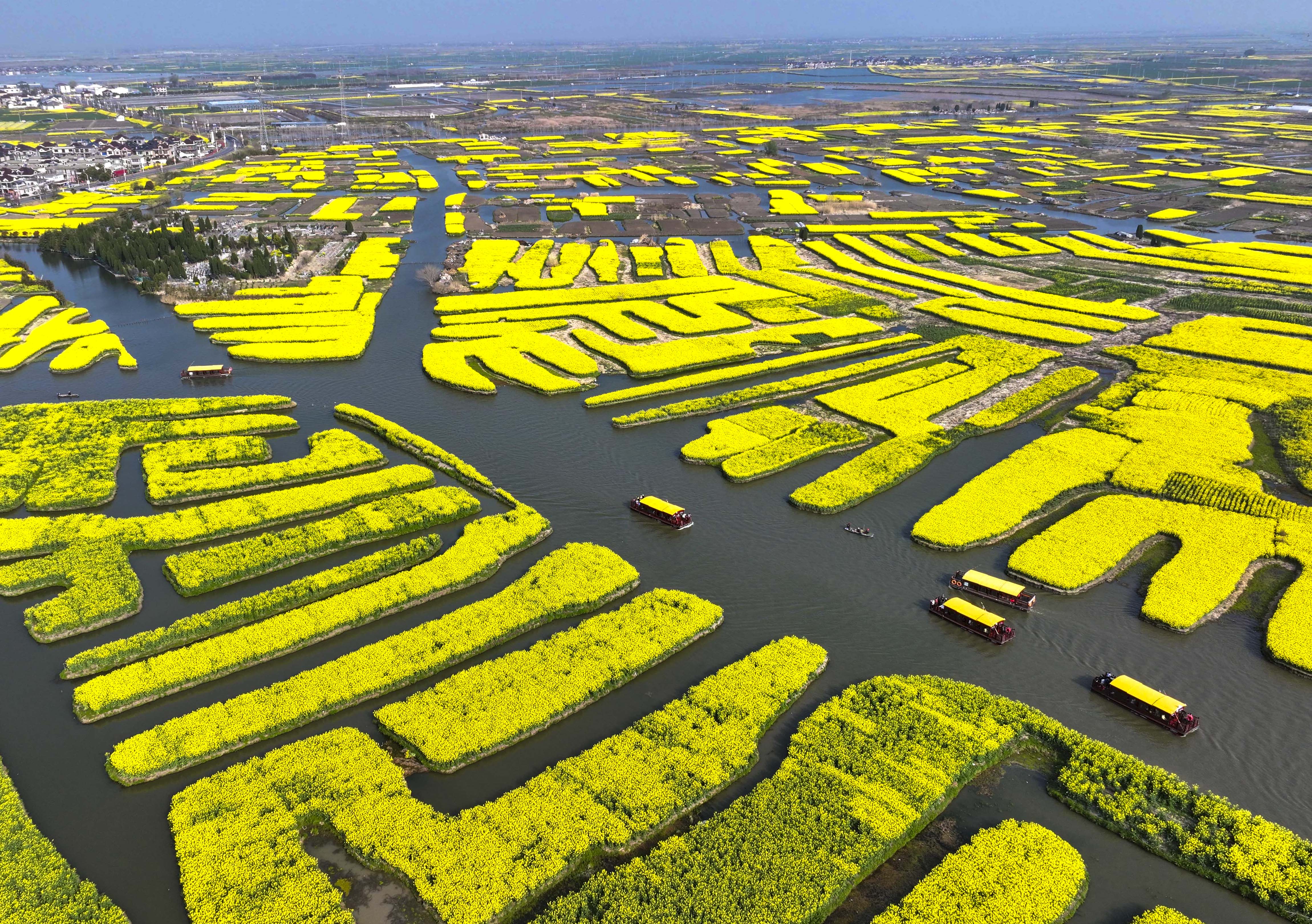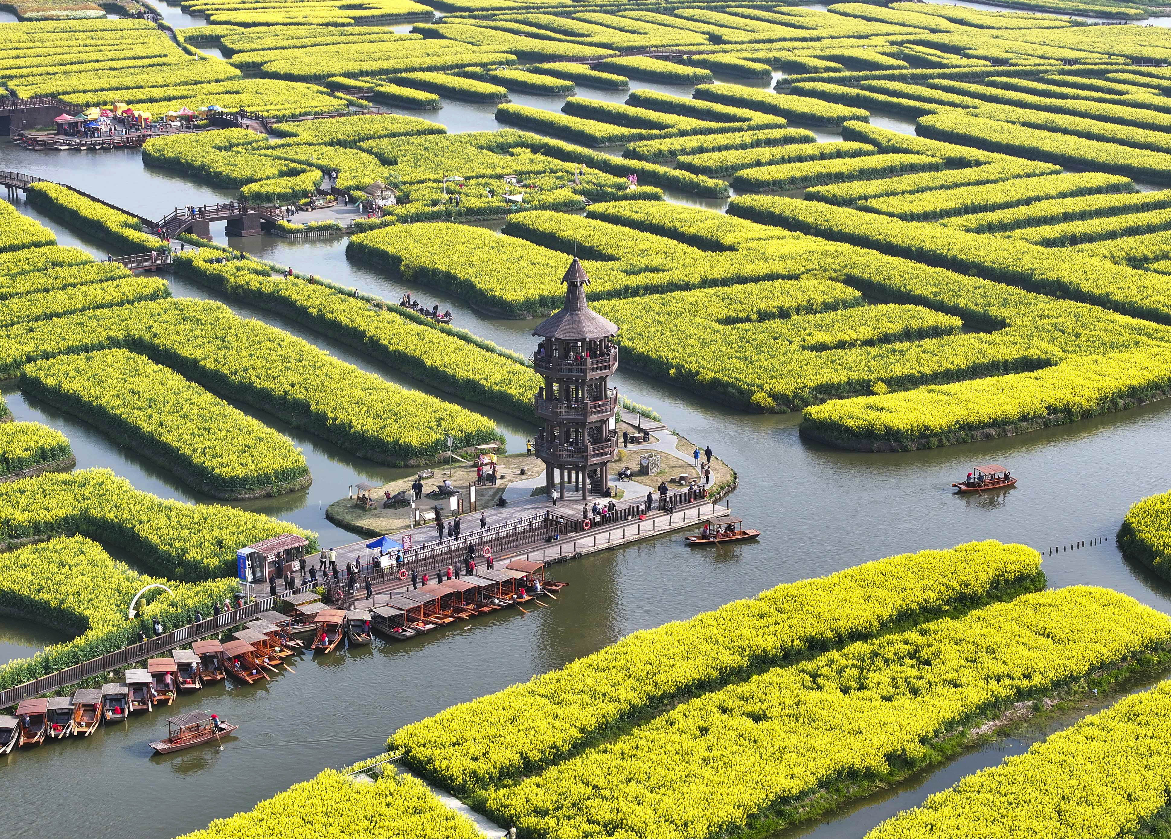 时下,江苏省兴化市千垛景区的油菜花进入盛花期,吸引众多市民游客前来踏青赏花,放松身心。
