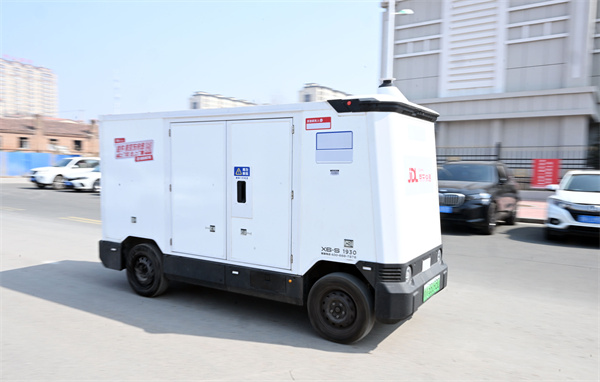 京东快递无人配送车亮相延吉街头 智能快递点亮城市发展