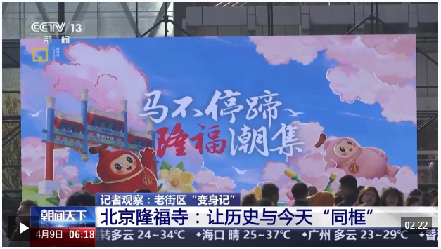 总台央视记者 李晶晶:站在隆福文化中心顶层露台,左手是故宫的红墙金瓦,右手是国贸CBD高楼群。两个不同时空的场景在此“同框”。这个视角正是隆福寺改造的灵魂——让历史与现代对话,让老北京与新时代握手。