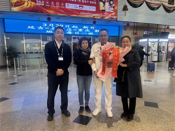 韩国入境旅客突发疾病 延吉机场医护人员极速救援 旅客康复后到机场真诚致谢