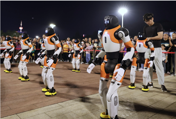 4月19日,为迎接第九届数字中国建设峰会,充满科技感与观赏性的具身智能机器人路演活动在福州五一广场举行。新华社图