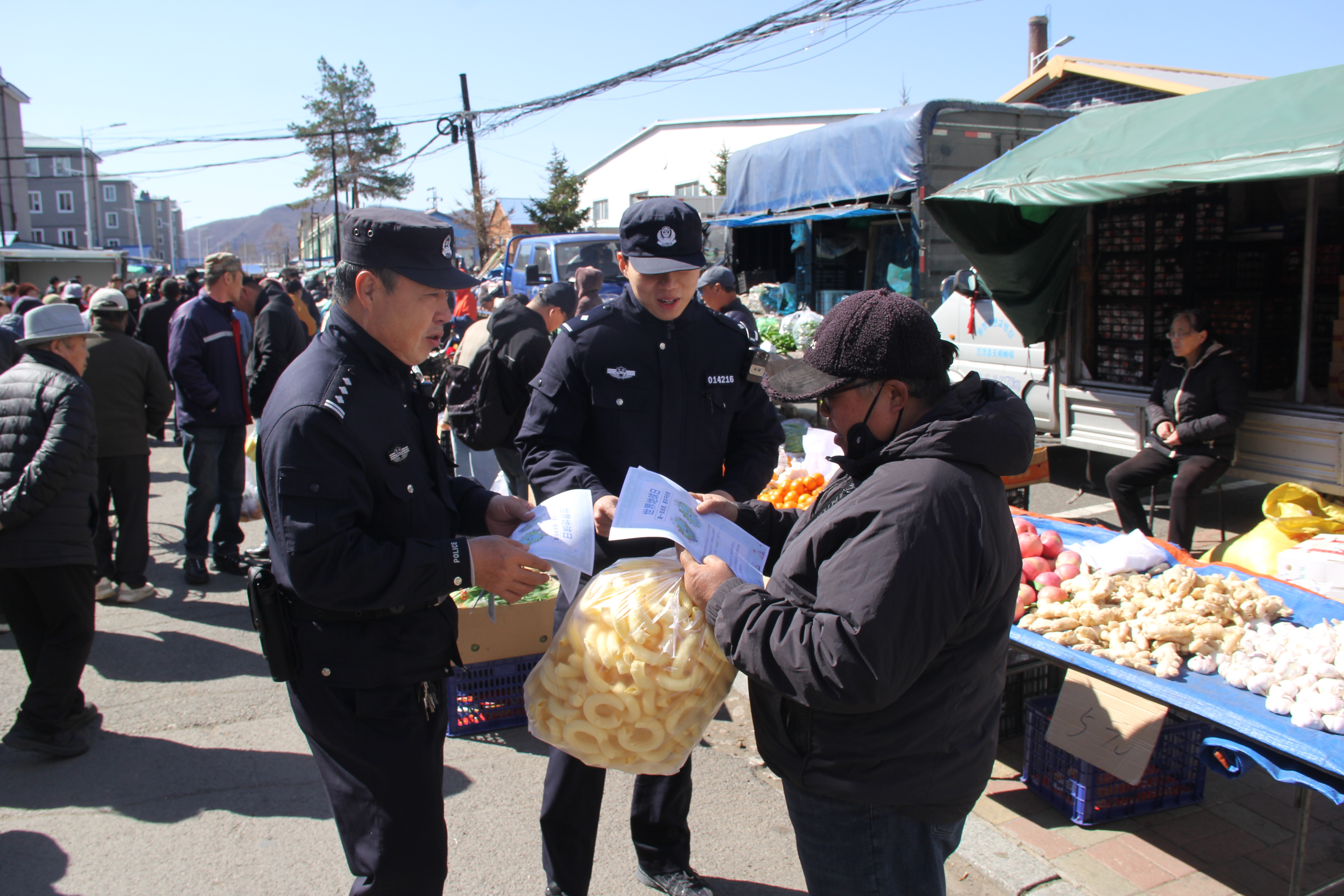 集市里人声鼎沸,烟火气十足,派出所民警通过发放宣传资料和面对面宣传等方式,向居民普及《中华人民共和国环境保护法》《中华人民共和国野生动物保护法》等法律法规。民警结合日常接处警中遇到的违规焚烧、噪音污染、垃圾分类等案例,以案说法,倡导居民从节约用水、垃圾分类、低碳出行等小事做起,自觉成为生态环境的守护者。一句句贴心的讲解,让“世界地球日”主题宣传更接地气,更有温度,切实凝聚共同守护生态环境的强大动力。活动现场累计发放宣传单500余份,接收咨询60余人次。