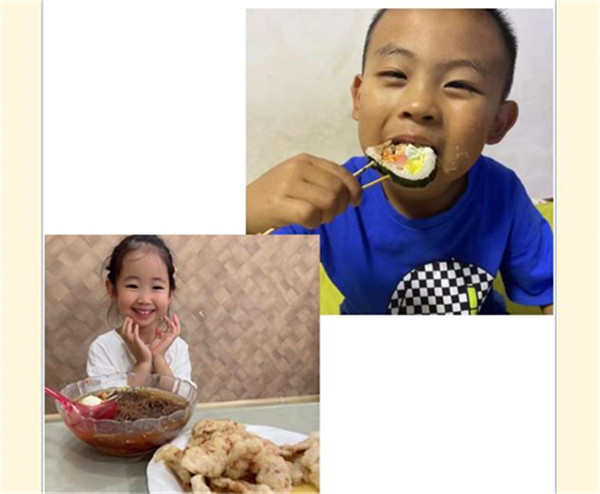 在爸爸妈妈的帮助下,孩子们开启了一场关于家乡美食的探寻,并且将自己的收获带到班级与伙伴们进行分享。冰冰凉凉的冷面、营养丰富的紫菜饭、松软可口的打糕……孩子在与美食的互动中,感受到了家乡美食的独特魅力。